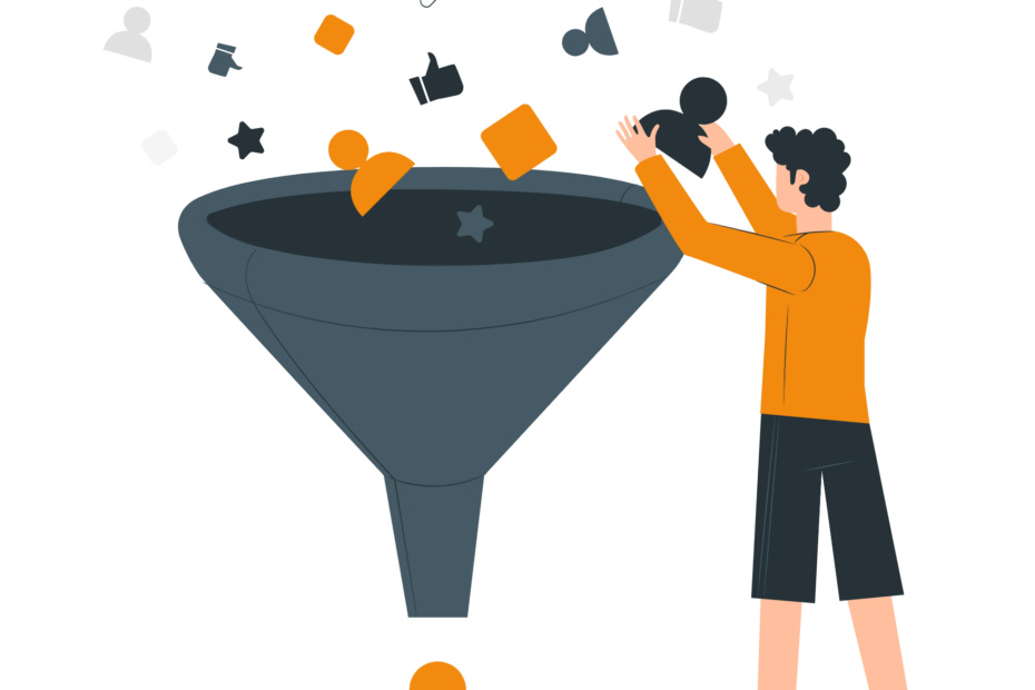 O funil de vendas se baseia na ideia de que os clientes passam por um funil até chegarem no momento da compra, esse funil tem as seguintes características: topo largo, meio estreitando em direção ao fundo que é ainda menor que as partes acima. Durante essas etapas o cliente é atraído, no topo, depois se gera uma conexão e por fim a venda do produto ou serviço. Também nessas etapas a maioria dos participantes de cada fase não chega a etapa seguinte, por isso o formato de funil, é como se em cada parte do funil alguns interessados ficassem “retidos”. O que na verdade apenas representa a perda de interesse que acontece normalmente na jornada de cada consumidor.